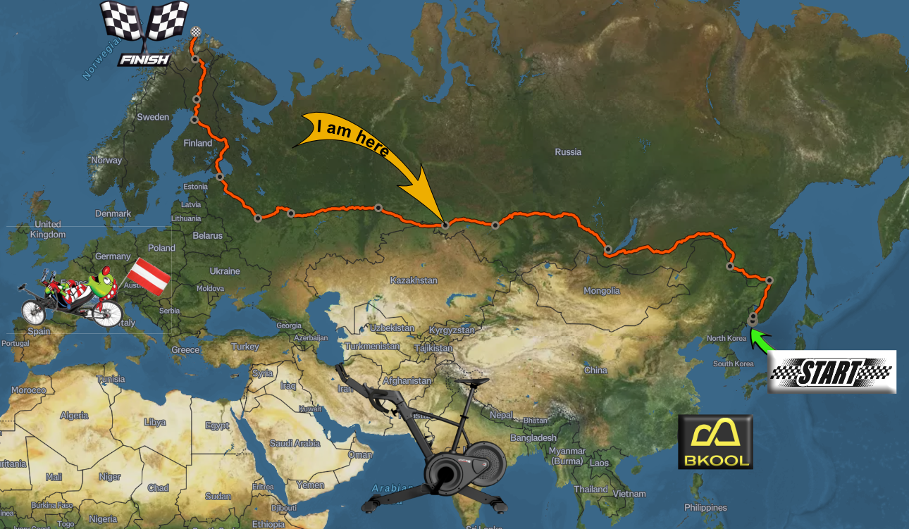 I am starting my World Cycling Tour on a Indoor Smart Bike Trainer on 6. July 2024 and will update my progress here daily on this site.